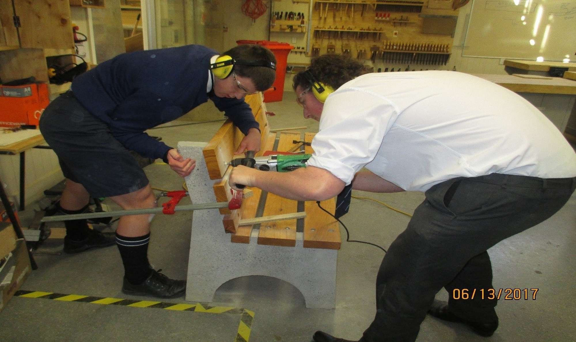 Sustainable materials have been used that will complement the existing surroundings as well as stand the test of time. A steel mould for the ends was firstly produced then used to pour the concrete into, while locally milled macrocarpa was sized and dynabolted to the seat ends. Students can be rightfully proud of their achievements as each bench seat will display a small plaque with their names on it.