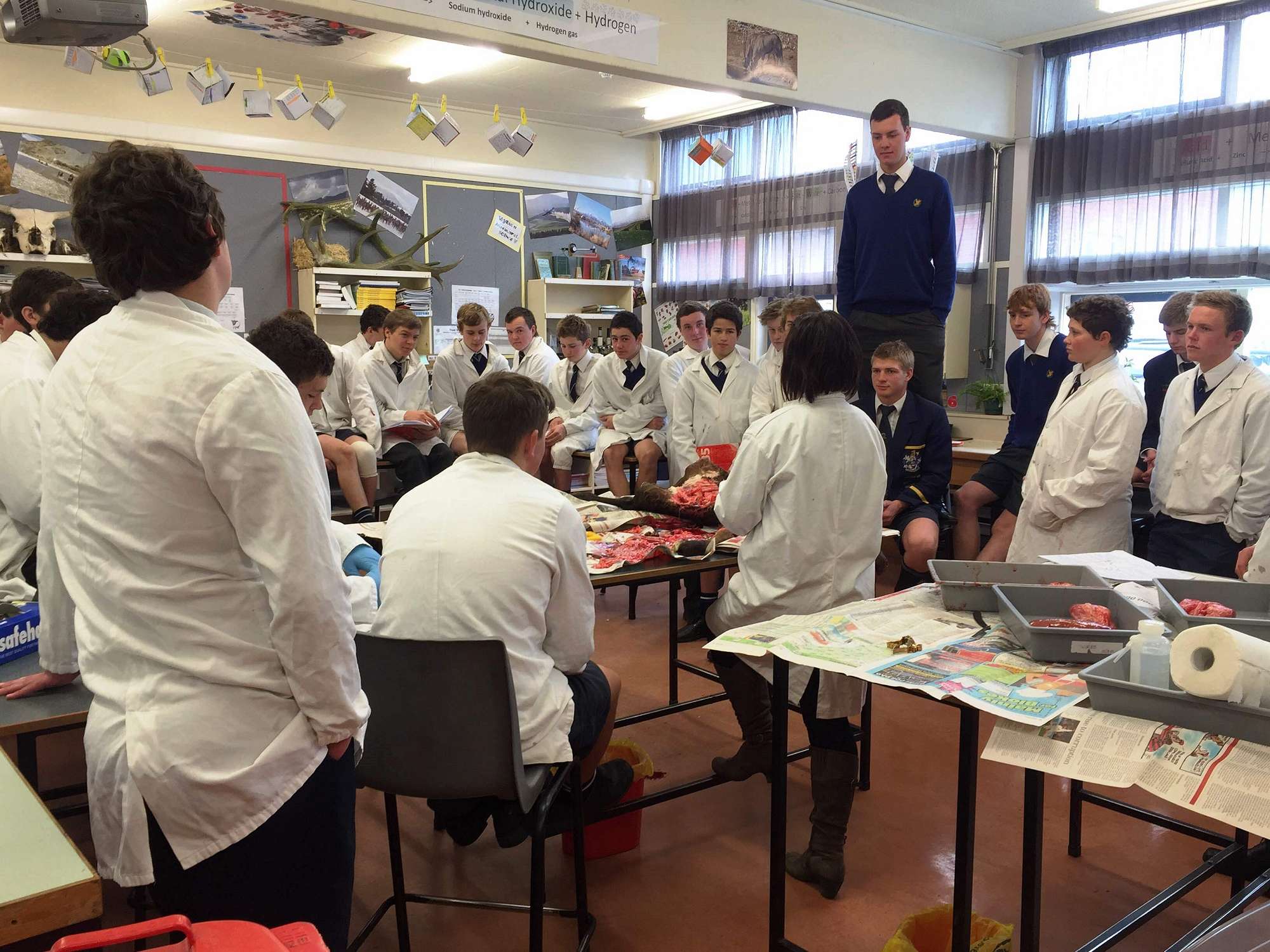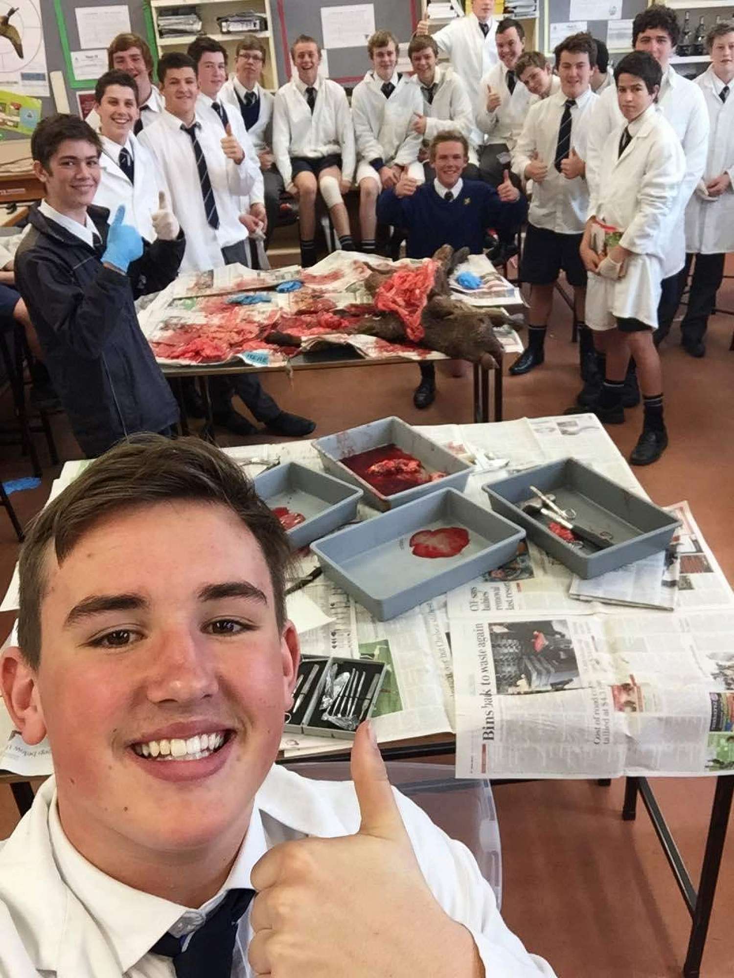 Last week Kaden Sadler’s parents had a cow give birth to a still born calf. They kindly donated the calf to the school for education purposes. The Year 11 Agricultural Science students study the digestive system of ruminate animals as part of an external NCEA Achievement Standard that looks at livestock management. This was a great opportunity for them to experience what a real calf digestive system looks like and relate the organ structures to their functions. The Year 11 Agricultural Science students and Science department would like to thank the Sadler family for this wonderful learning opportunity