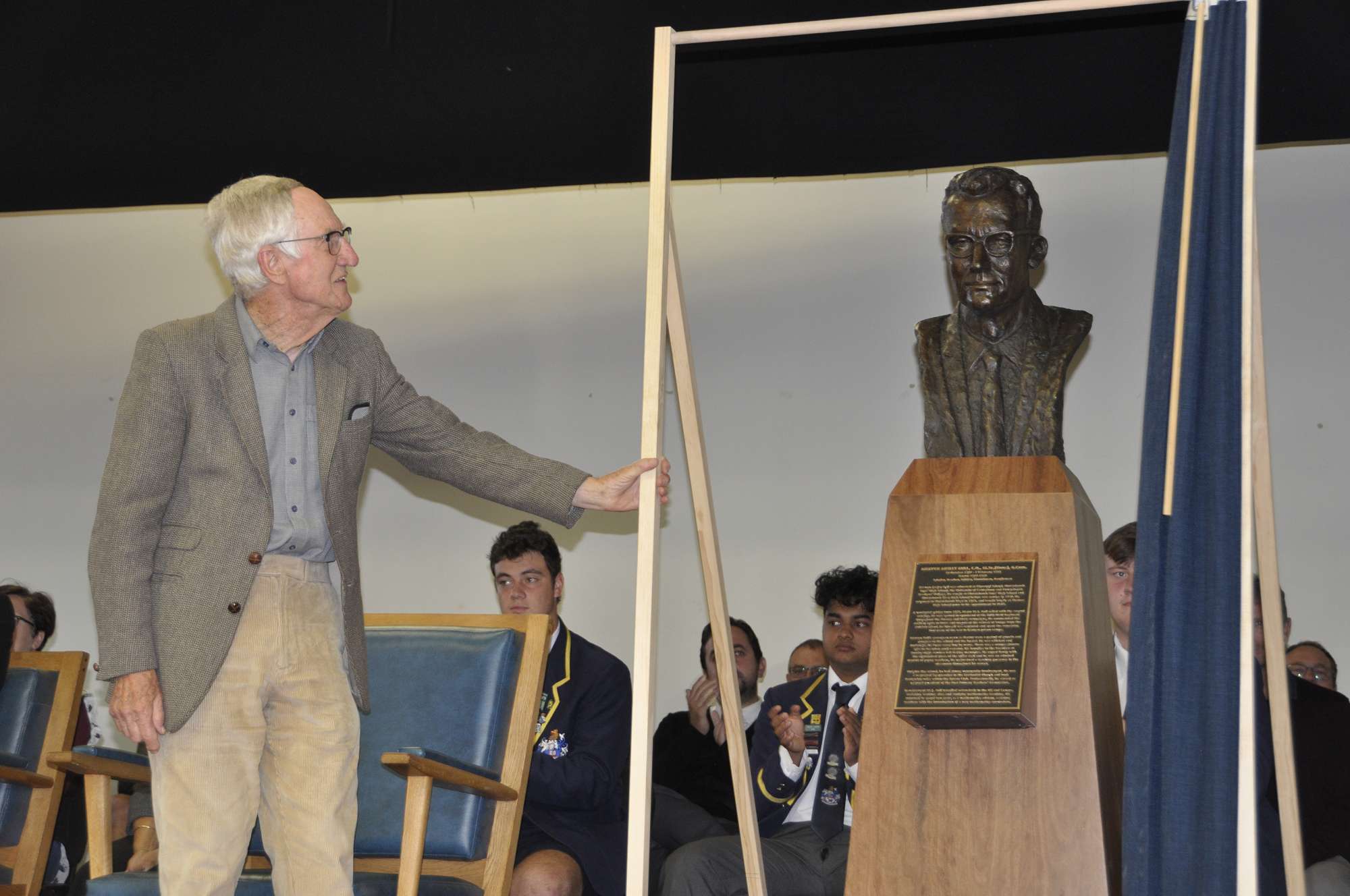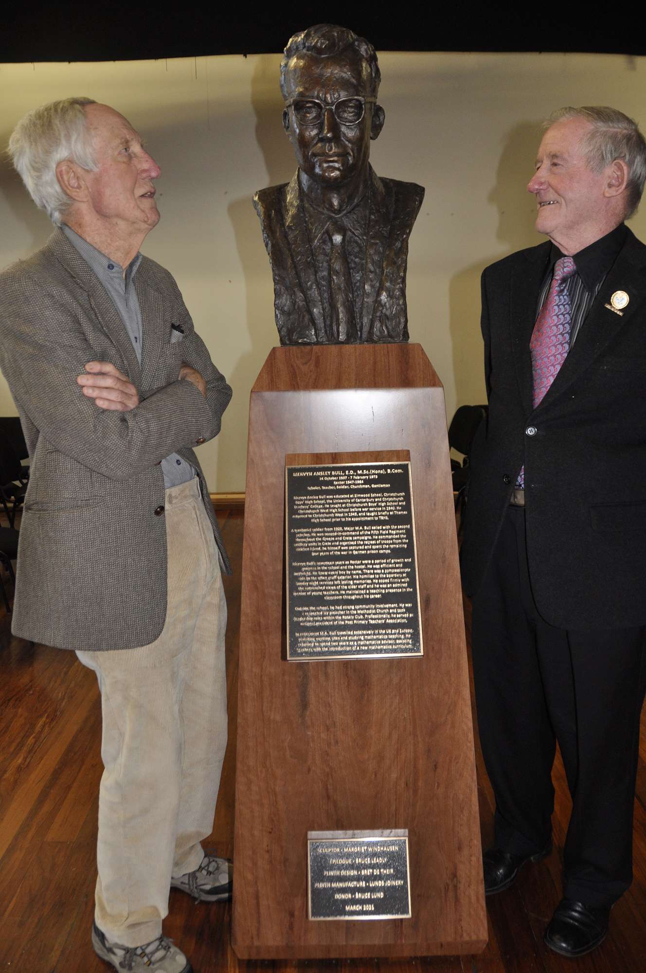 Timaru Boys' High School was delighted to host a very special assembly on Wednesday 31 March, one that saw the unveiling of a wonderful bronze sculpture of a much loved Rector, Mr Mervyn Bull.