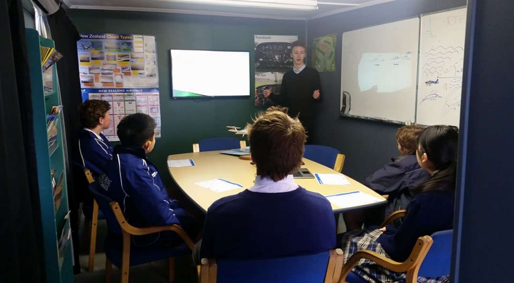 The Timaru Boys’/Girls’ High School 10 week Aviation Course students received their last flight briefing of the term from instructor Chris.
