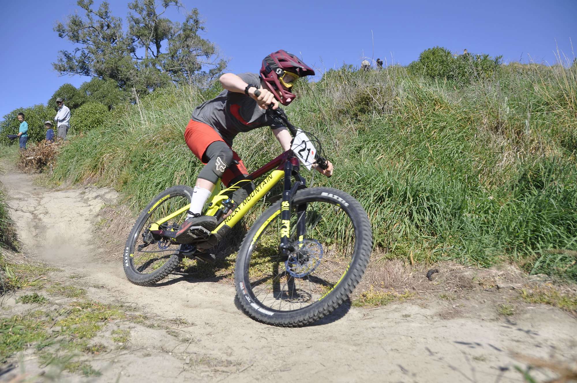 The sun shone all day on the nine boys racing their mountain bikes on Saturday 15 September at Cape Wanbrow, a rocky headland overlooking Oamaru Harbour.