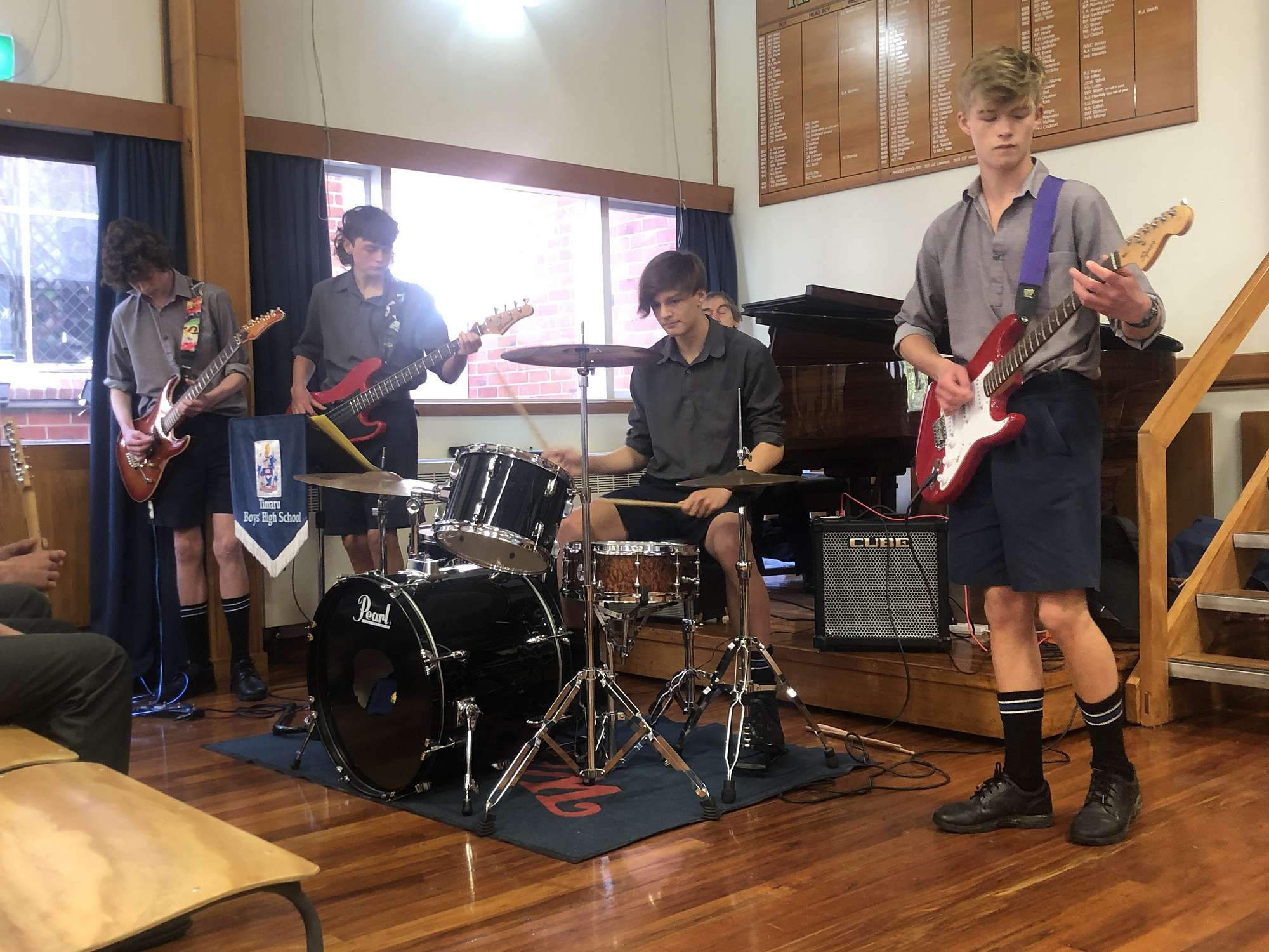 The school was then treated to musical performances from the TBHS Concert Band, (under the instruction of band conductor Margaret van Ginkel), TBHS Choir (singing Homeward Bound with Lucy Dillon conducting), and Junior and Senior Rock Quest bands. All the students involved in these musical performances have contributed considerable energy to numerous lunchtimes and after school practises.
