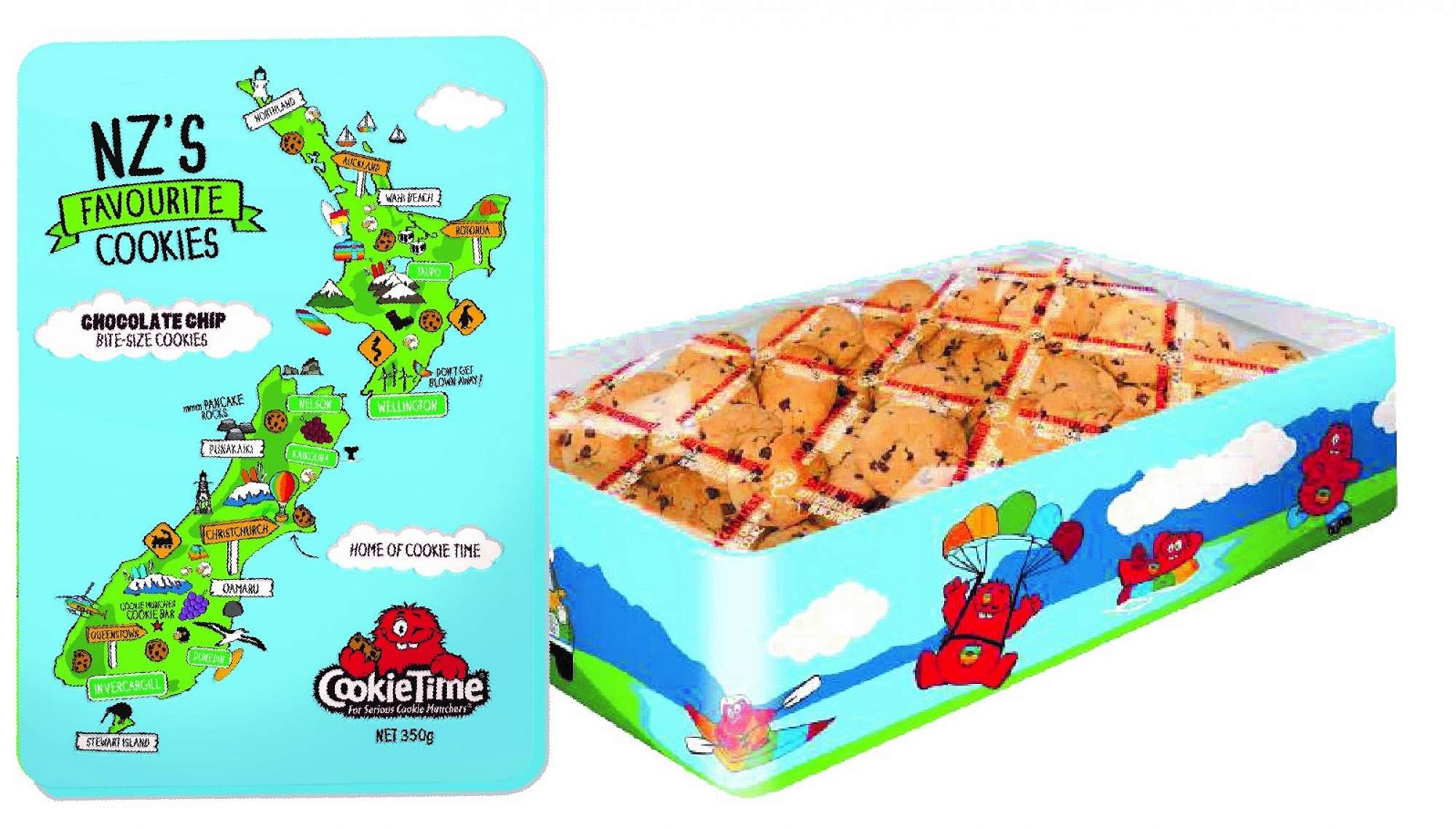 Cookie Time is offering a Christmas special of delicious Cookie Time biscuits in a Kiwiana celebration tin. The cost is only $15, and the PTA make $3.50 for every tin sold. Each tin contains 350g of biscuits, (which is approx. 50 bite size biscuits.) For every 10 tins you purchase you receive a bonus gift from Cookie Time.