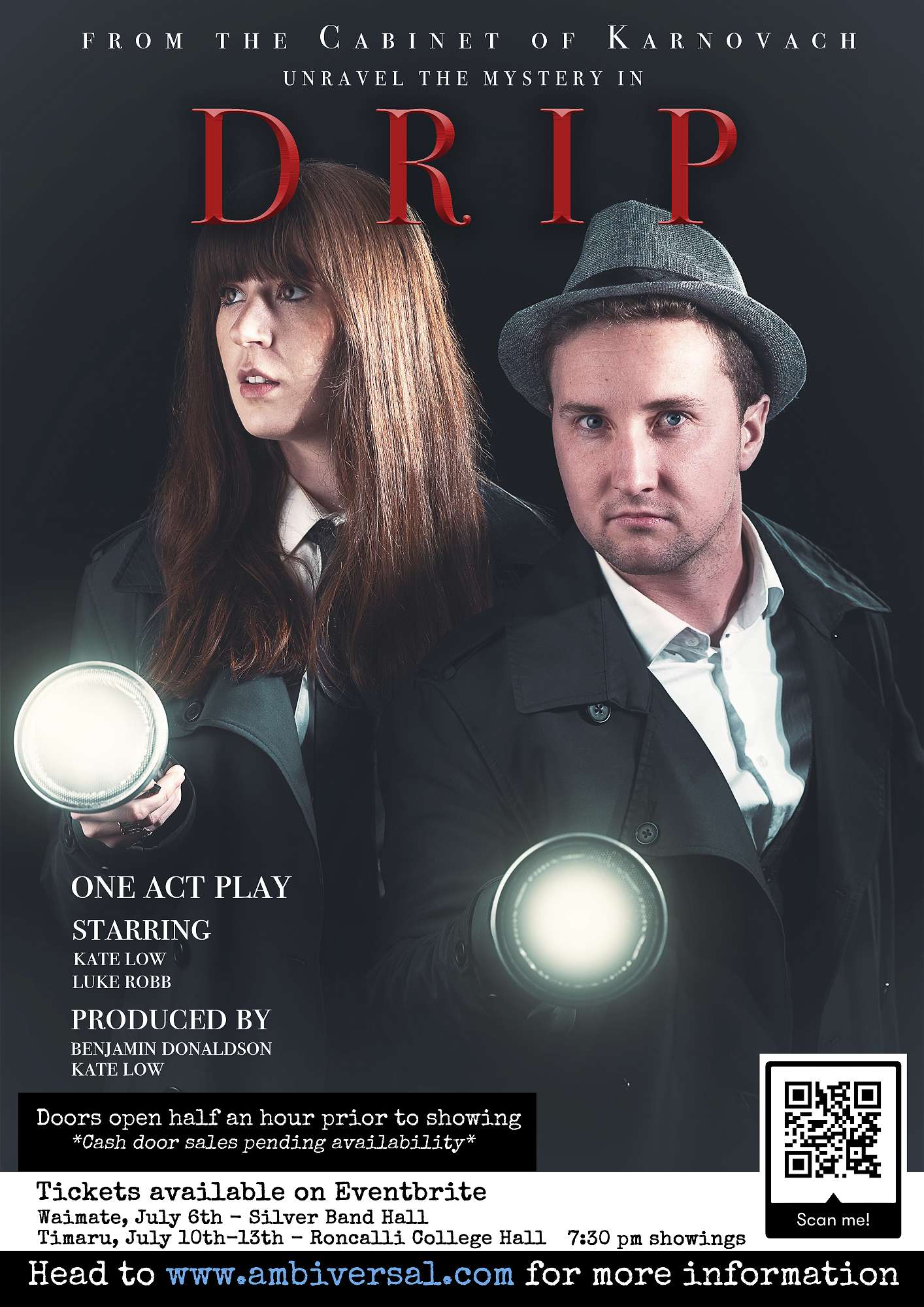 3. A Timaru theatre company is back on stage with the latest addition to its The Cabinet of Karnovach anthology play series Drip. Use the discount code STUDENT5 for $5 off tickets. Click this link to read more.