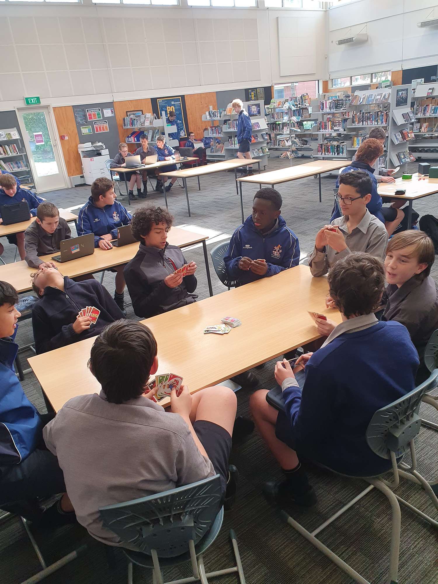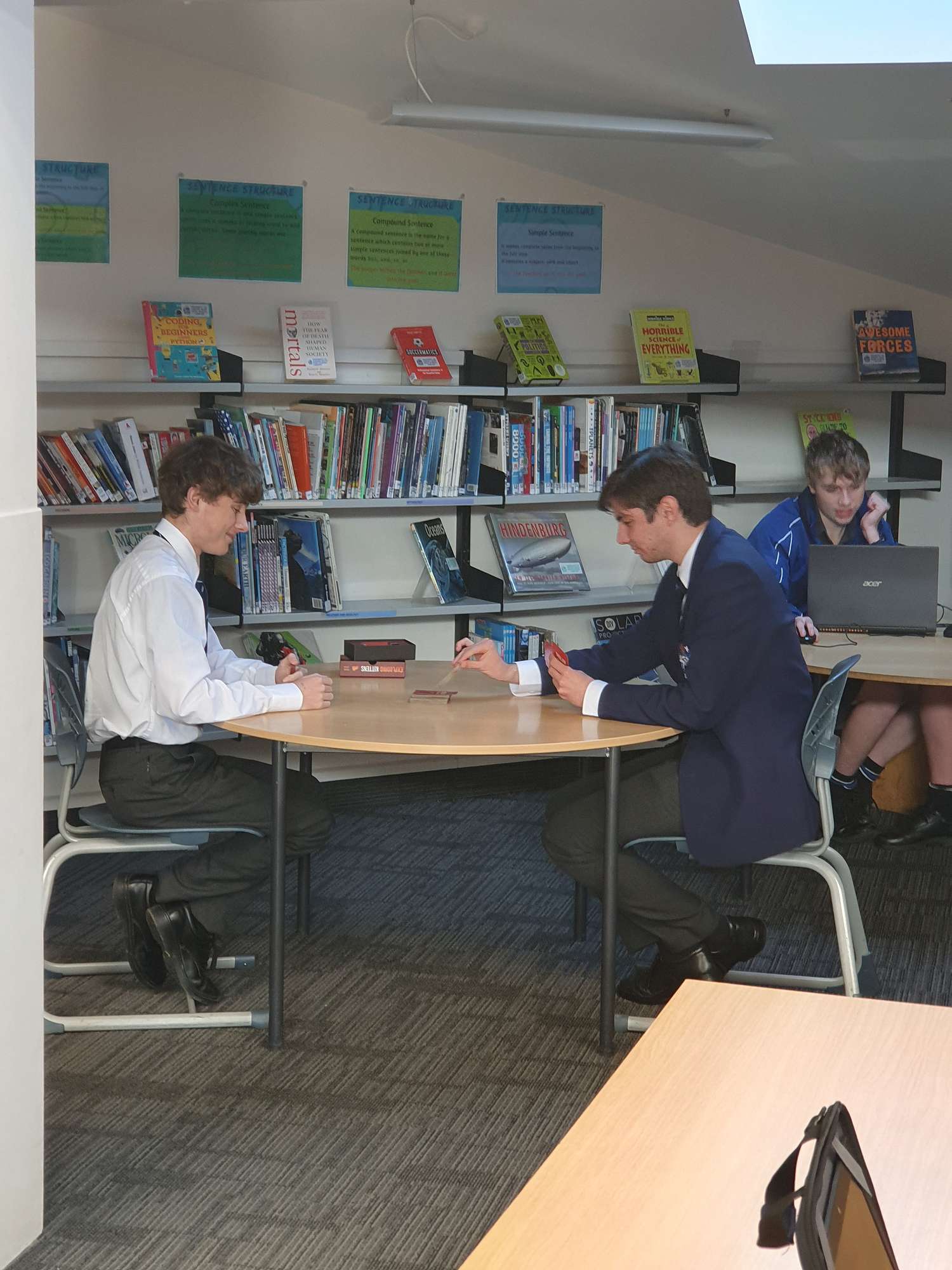 With the phone ban at schools, the library has seen an increase in the number of board and card games that are being played at lunchtime. No doubt, the numbers are also helped by the cold and wet winter months but it is a pleasure to see. Boys have been playing a mix of traditional games like Scrabble or Connect 4, newer games like Exploding Kittens as well as creating their own games by trying to build the tallest tower Jenga bricks! Even our set of playing cards are a source of amusement as our cards are twice their normal size!